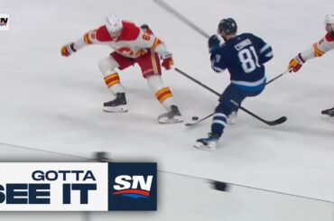 L’ailier de Winnipeg Jets, Kyle Connor, fait un mouvement étonnant de dépasser la défense avant de simuler Dan Vladar et…