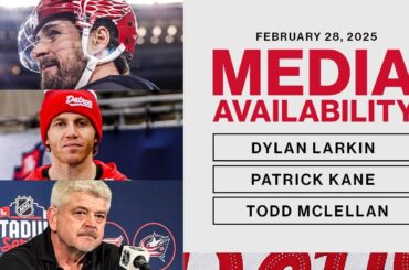 Todd McLellan, Dylan Larkin et Patrick Kane parlent avec les médias après la pratique de Détroit au Stadium de l’Ohio…