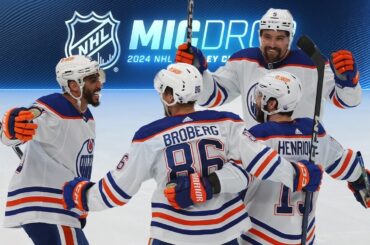 Le capitaine des Oilers d’Edmonton, Connor McDavid, ouvre le score lors du sixième match de la WCF avec un spectaculaire…