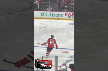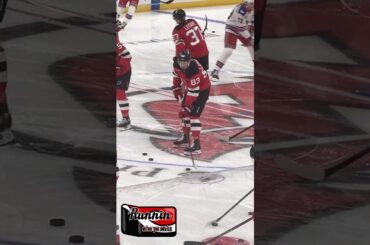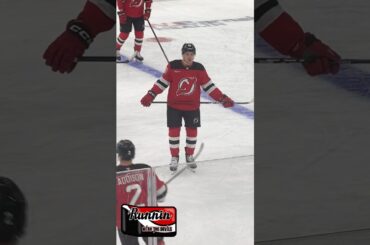 L’attaquant des Devils du New Jersey Nico Hischier lors des échauffements avant le jeu NJ Devils vs NY Islanders au…