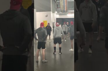 Les joueurs des Devils s’échauffent avec un peu de football dans les entrailles du Prudential Center avant les demi-finales de…