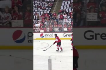 Jack Hughes montre LES MAINS pendant les échauffements au Prudential Center avant les demi-finales de la conférence Est des Devils…