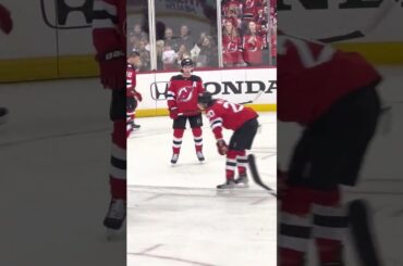 Les Devils ont frappé la glace pour les échauffements au Prudential Center avant les Devils du New Jersey contre les…