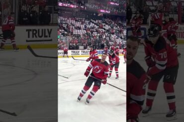 Les Devils du New Jersey patinent pendant les échauffements avant le match 7 contre les Rangers de New York. Regardez…