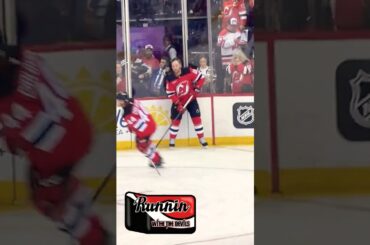 L’attaquant des Devils du New Jersey Tomas Tatar nourrissant ses coéquipiers rondelle pendant les échauffements avant le match 3 de…