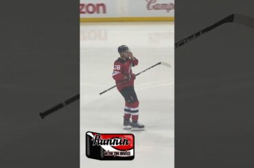 Le capitaine du New Jersey Devils Nico Hischier lors des échauffements avant NJ Devils vs Carolina Hurricanes Game 3 au…