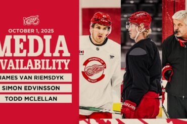 James Van Riemsdyk, Simon Edvinssson et Todd McLellan parlent avec les médias après l’entraînement de Détroit le mercredi 1er octobre…