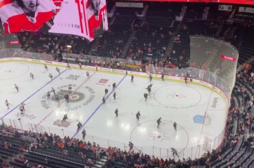 Flyers portant des maillots Pride lors des échauffements contre les Ducks d’Anaheim 17 janvier 2023 Photo prise depuis la tribune…