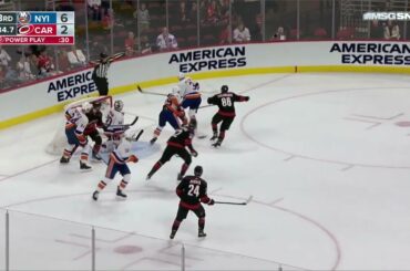 Le gardien des Islanders Ilya Sorokin vole Jesperi Kotkaniemi pour assurer la victoire des Isles sur les Hurricanes de la…