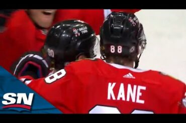 Regardez Patrick Kane retirer la rondelle du tirage au sort et trouver Tyler Johnson qui enterre le tir sur réception…