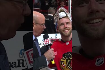 Le gardien des Blackhawks de Chicago, Spencer Knight, prend les applaudissements de la foule après avoir effectué 41 arrêts lors…