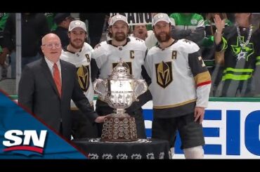 Regardez les Golden Knights de Vegas recevoir le Clarence S. Campbell Bowl après avoir battu les Stars de Dallas lors…