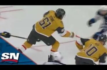 Regardez le capitaine des Golden Knights de Vegas, Mark Stone, récolter son deuxième point du match après avoir attrapé une…