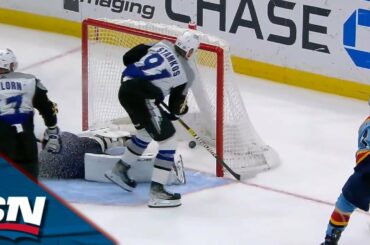 Steven Stamkos marque le 498e but de sa carrière alors qu’il déchire un tir sur réception en avantage numérique pour…