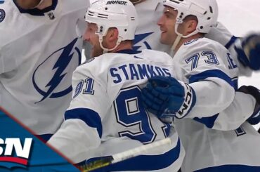 Après un superbe gardien de Victor Hedman, Nikita Kucherov parvient à trouver Steven Stamkos pour le but dans les dernières…