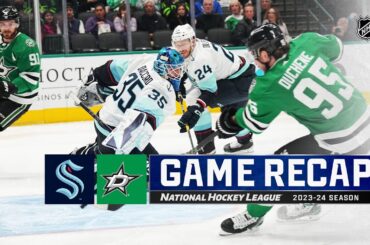 Regardez le match complet des faits saillants de la LNH du match entre le Kraken de Seattle et les Stars…