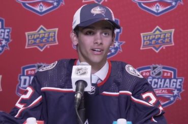 L’attaquant des Steelheads de Mississauga Luca Del Bel Belluz a rencontré les médias après avoir été sélectionné 44e au total…