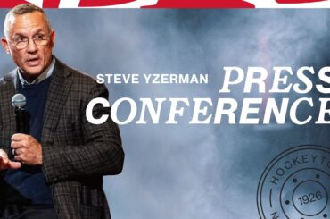Le vice-président exécutif et directeur général des Red Wings de Détroit, Steve Yzerman, s’adresse aux médias au sujet de la…