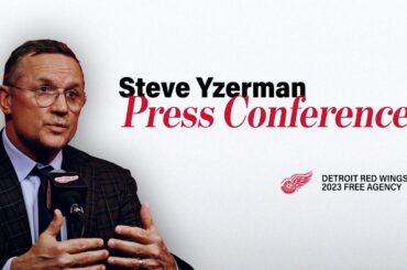 Le vice-président exécutif et directeur général des Red Wings de Detroit, Steve Yzerman, s’entretient avec les médias au sujet des…