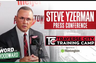 Steve Yzerman s’entretient avec les médias avant le camp d’entraînement des Red Wings de Détroit. Présenté par : Huntington Bank