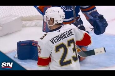 Regardez l’attaquant des Panthers de la Floride Carter Verhaeghe décocher un tir de l’enclave devant le gardien de but des…