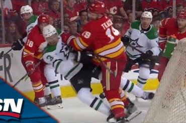 Regardez deux combats éclater entre les Flames de Calgary et les Stars de Dallas après que l’attaquant des Flames Matthews…