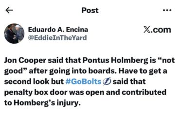 On dirait certainement que la porte du banc des pénalités est ce qui a blessé Holmberg. — ChucklePioneer