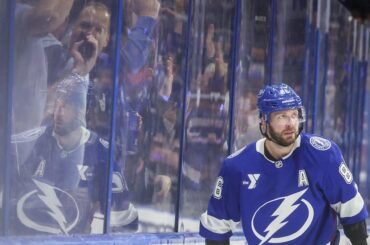 Jon Cooper, Brandon Hagel, JJ Moser, Corey Perry et Nikita Kucherov parlent aux médias après que le Lightning ait égalisé…