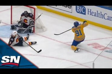 Regardez l’ailier des Blues de St. Louis Vladimir Tarasenko frapper un tir sur réception du côté du filet en avantage…