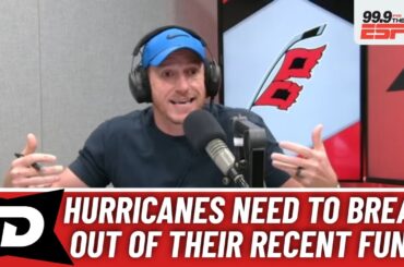 Tim Donnelly et Dennis Cox discutent des Hurricanes de la Caroline qui perdent des matchs consécutifs contre les Red Wings…