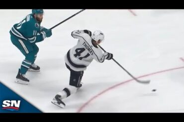 Regardez la recrue des Kings de Los Angeles, Akil Thomas, accepter une passe et utiliser deux patineurs comme écran pour…