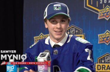 Écoutez le défenseur des Thunderbirds de Seattle Sawyer Mynio après avoir été sélectionné par les Canucks de Vancouver au troisième…
