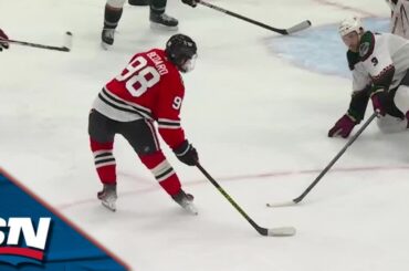 Regardez la recrue des Blackhawks de Chicago, Connor Bedard, marquer son deuxième but contre les Coyotes de l’Arizona, décochant un…