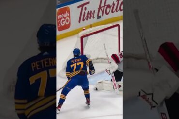 Le gardien des Hurricanes de la Caroline, Brandon Bussi, a laissé Tage Thompson secouer la tête après avoir effectué un…