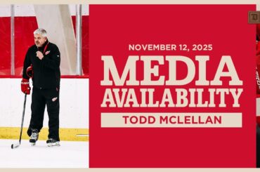Todd McLellan s’entretient avec les médias après l’entraînement de Detroit le mercredi 12 novembre 2025 au centre d’entraînement BELFOR.