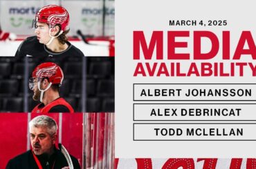 Albert Johansson, Alex DeBrincat et Todd McLellan parlent avec les médias après le patin matinal de Detroit à Little Caesars…