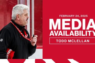 Todd McLellan s’entretient avec les médias à la suite de l’entraînement de Détroit le lundi 24 février 2025 au Belfor…