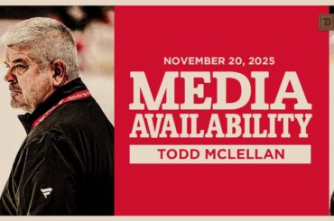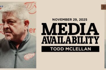 Todd McLellan s’adresse aux médias après l’entraînement matinal de Détroit au TD Garden le samedi 29 novembre 2025.