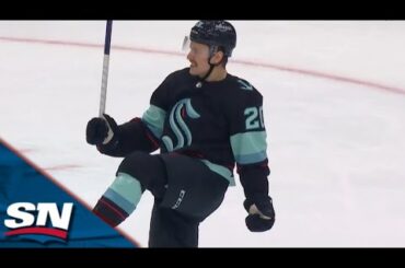Regardez l’attaquant du Seattle Kraken Eeli Tolvanen marquer le cinquième but de l’équipe de la période en fin de deuxième…