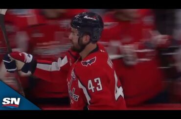 Regardez l’attaquant des Capitals de Washington Aliaksei Protas force un chiffre d’affaires et met en place Tom Wilson pour un…
