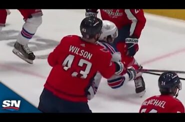 Regardez Tom Wilson des Capitals de Washington être pénalisé immédiatement après un but de Vincent Trocheck des Rangers de New…
