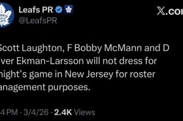 [Leafs] Laughton, McMann et Ekman-Larsson ne s’habilleront pas ce soir à des fins de gestion de l’effectif — rsyzygy