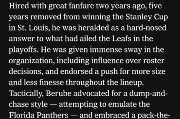 James Mirtle sur le Leaf Report dit que les Leafs vont certainement changer d’entraîneur et que plus cela dure longtemps,…