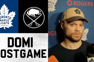 Max Domi s’entretient avec les médias après la défaite 3-2 en fusillade des Leafs contre les Sabres de Buffalo, samedi.…