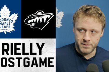 Morgan Rielly s’entretient avec les médias après la victoire 4-2 des Leafs contre le Wild du Minnesota, dimanche. ABONNEZ-VOUS :…