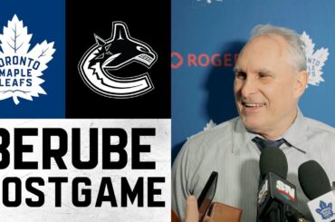 L’entraîneur-chef Craig Berube s’entretient avec les médias après la victoire de 3-2 en tirs de barrage des Leafs contre les…