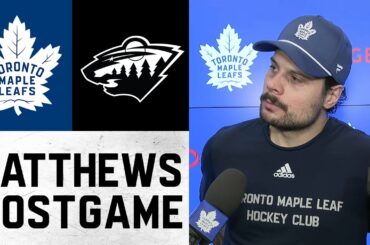 Auston Matthews s’entretient avec les médias à la suite de la défaite 6-3 des Leafs face au Wild du Minnesota,…