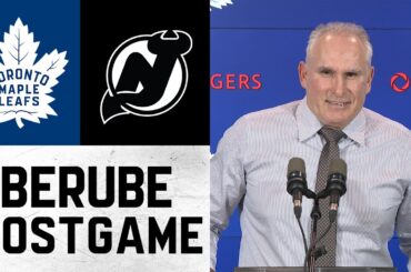 L’entraîneur-chef Craig Berube s’entretient avec les médias après la victoire 4-0 des Leafs contre les Devils du New Jersey, mardi.…