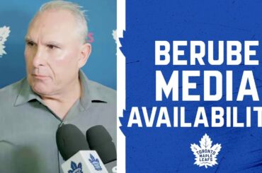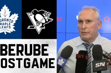 L’entraîneur-chef Craig Berube s’entretient avec les médias à la suite de la victoire de 6-3 des Leafs contre les Penguins…