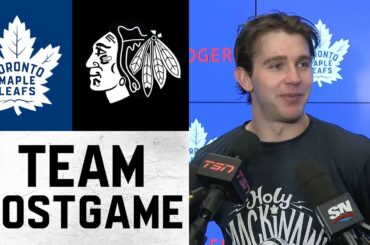 L’entraîneur-chef et les joueurs parlent avec les médias après la victoire 3-2 des Leafs contre les Blackhawks de Chicago, mardi.…